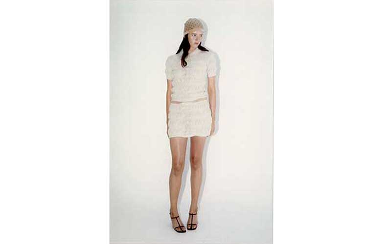 Con note di sottile femminilità, la nostalgia rimane una corrente sotterranea con temi dell'era spaziale con i temi dell'era spaziale, illustrati da una maglieria caleidoscopica, mentre un set di gonne che unisce il passato e il futuro gioca con le ombre e la ripetizione. In tutta la collezione, il movimento è abbracciato attraverso la forma e la grafica.