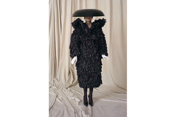 La collezione è un mix di abiti da uomo e da donna fatti su misura, meticolosamente realizzati con le tecniche più sofisticate di oggi. Rendendo omaggio alla venerata storia della Couture di Balenciaga, i capi trasformano architettonicamente il corpo e rimandano all'arte del savoir-faire in una chiave moderna.