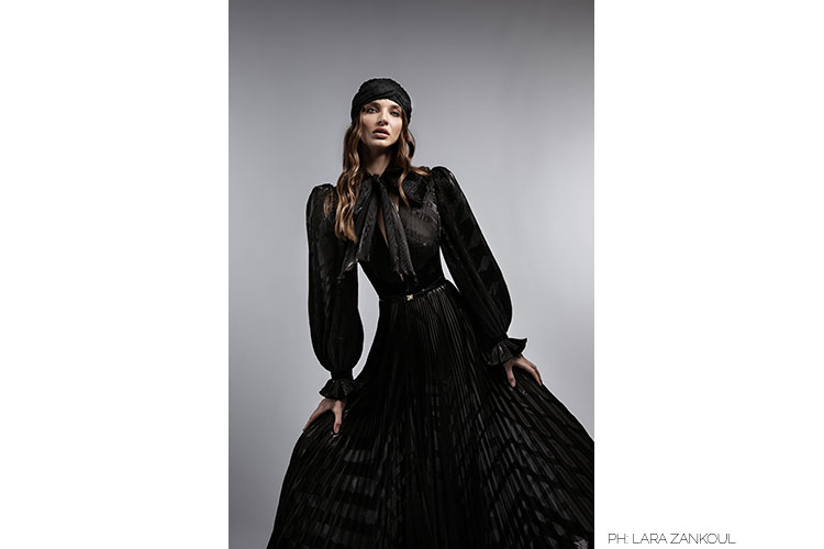 Le pieghe a pipa degli abiti e delle gonne ondeggiano tra meraviglia ed incanto, delineando una scia di movimento perpetua.
