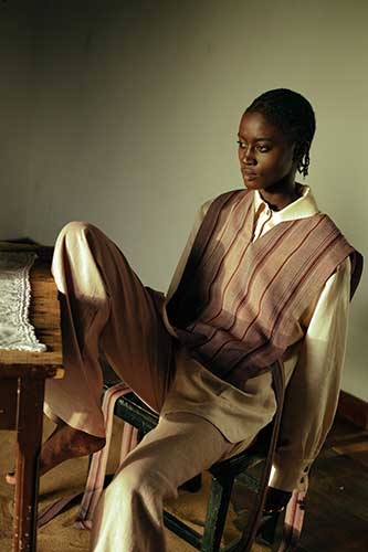 Dopo la laurea alla Central Saint Martins (dove ha vinto la borsa di studio LVMH Grand Prix), Benjamin Benmoyal, 30 anni, ha lavorato presso Alexander McQueen e Hermes prima di fondare la sua etichetta omonima nel 2020.