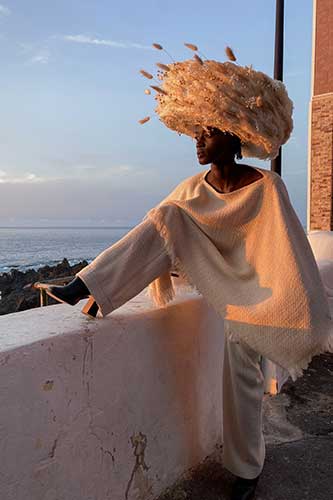 Gli enormi cappelli della collezione Primavera - Estate 2022 sono interamente realizzati con fiori secchi e si ispirano allo Shtreimel, un cappello di pelliccia indossato dagli uomini ebrei Chassidismi.