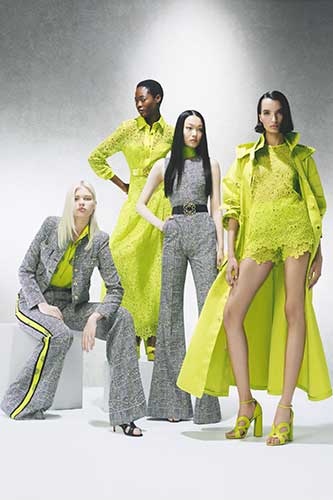 Dal giorno alla sera, la donna ELIE SAAB porta sempre con convinzione la sua personalità. Il monogramma della maison è sottilmente lavorato a maglia su gonne a vita alta e crop top in un lime elettrizzante per momenti spensierati di semplice piacere. Abiti e tute in popeline sono impreziositi da maniche a sbuffo esagerate, un'estensione di forza e audacia. Gli abiti da ballo ricamati con filati abbaglianti esplodono di multicolore e di estro per momenti di glamour e sfarzo, mentre i motivi di paillettes modaioli sono ricamati su tulle nero trasparente per una rischiosa illusione di pelle.