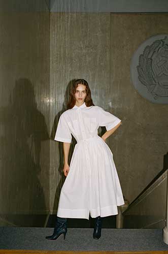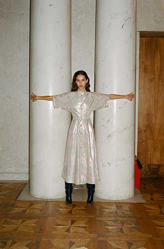 Il tema del foulard si vede in molti articoli della collezione, le donne del Bashkir portavano il foulard senza piegarlo in un angolo, come le russe, ma in un rettangolo, e questa linea costruttiva va dai cappucci dei trench tagliati e dai frammenti di foulard che sembrano cadere sui vestiti a un giromanica e un tassello quadrati. Un frammento di sciarpa, il modo in cui è caduto in un quadrato sopra la figura, formando onde e pieghe, è usato negli abiti e dà loro una silhouette da sala da ballo.