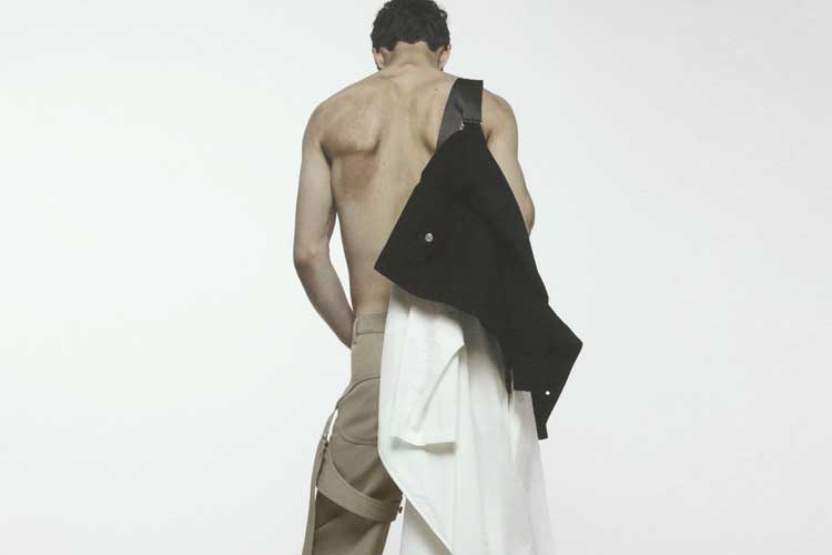 Ritroviamo il cinturino sul retro della giacca da motociclista in pelle, ispirato a una muta del 1981 uscita direttamente dagli archivi della Maison, affiancato da un logo come un tatuaggio, lo stesso che inaugurò la prima linea maschile nel 1973.