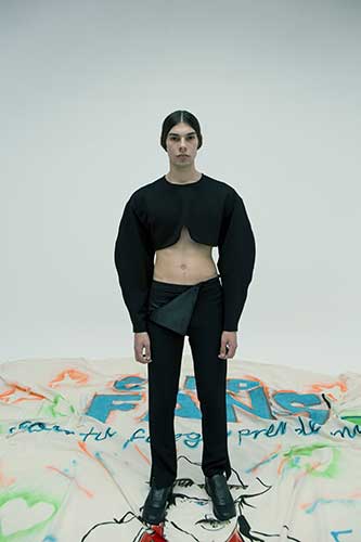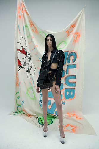 La collezione SS22 si chiama "Cumbiancheta", riferendosi alla cumbia degli anni '90. Questo genere musicale tropicale retrò di origini pan-latinoamericane, ha avuto un impatto pionieristico nella loro cultura popolare. I colori al neon, la decadenza e l'opulenza rappresentano questo periodo d'oro, infuso dalla fantasia economica che 1 peso era uguale a 1 dollaro, ha segnato l'estetica della loro società in un periodo, trasformando la Miami di Gianni Versace nell'epitome culturale. Mentre il consumo era fuori controllo, il neoliberalismo rovinava internamente il paese: le loro fabbriche si svuotavano e il loro savoir-faire artigianale si perdeva progressivamente, la crisi era dietro l'angolo. I ceti medio-bassi ignari, estremamente abbronzati, biondi e con stampe animalier ora si divertivano a mangiare pizza con champagne, e il loro presidente girava per le strade su una Ferrari rossa e usciva con i Rolling Stones in tv. La collezione si ispira al minimalismo degli anni 90', diventato kitsch e il periodo nostalgico degli anni '20, quando i parigini si riferivano agli argentini come "riche comme des Argentins", un'utopia una volta raggiunta che non è mai tornata.