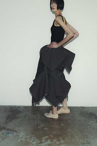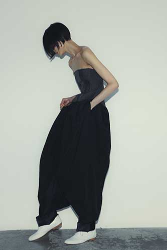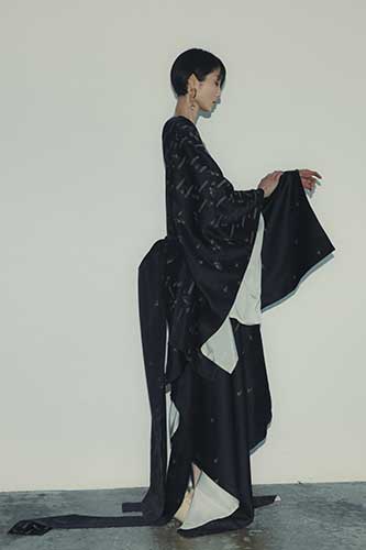 Concepita in un momento di sfida che ha stimolato la creatività forse ancora di più, molto sulla falsariga di quello che Madeleine Vionnet faceva con i suoi manichini di bambole durante la grande influenza del secolo scorso, la collezione esplora il dialogo tra Oriente e Occidente attraverso i rispettivi modi di costruire i capi.