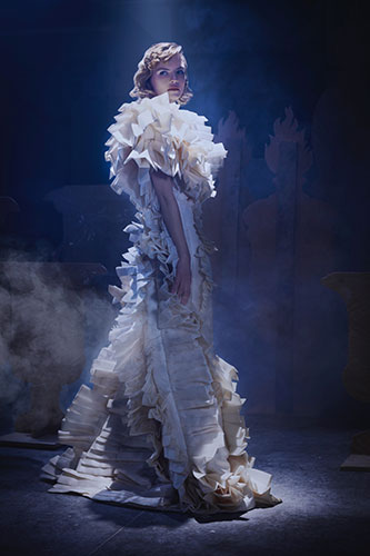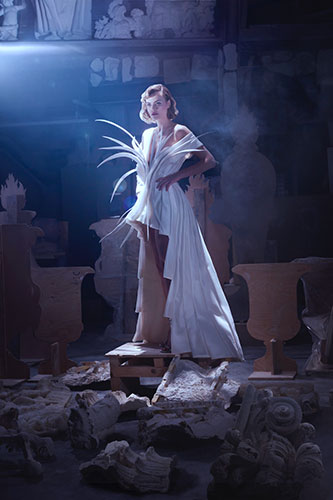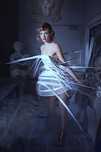 Per realizzare i 15 abiti della collezione sono stati necessari non meno di 500 metri di organza. Dietro l'opacità della materia si profila la grazia della donna vista da Farhad Re e che lui chiama Galatea, dalla pelle bianca come il latte e di cui Pigmalione si è innamorato ...