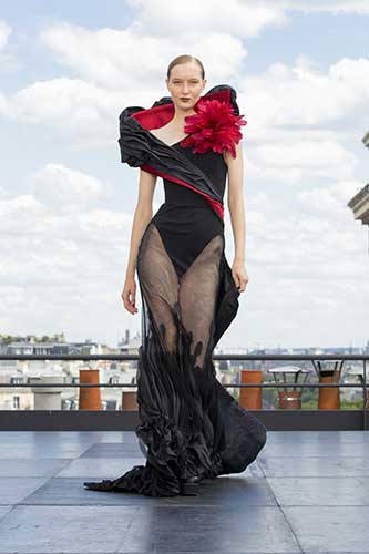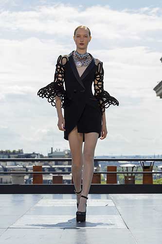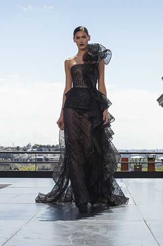 La collezione GEORGES CHAKRA Couture AUTUNNO - INVERNO 2022/23 propone un'interpretazione cinematografica di una gioventù romantica che vaga per le strade di Parigi. Attratta da un legame con la città, questa collezione incarna le serate trascorse sui tetti ricoperti di zinco e guardando attraverso balconi in ferro battuto e laccati.