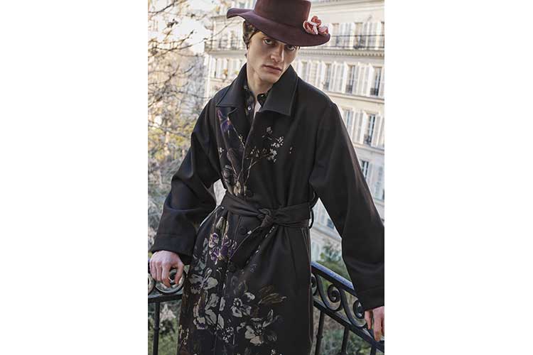 Le stampe appaiono anche sulle fodere delle giacche sartoriali in cashmere e lana, sui cappotti oversize con abbellimenti floreali e sui pantaloni sartoriali anni '70.
