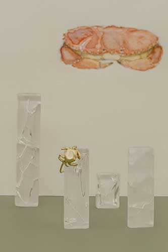 Bona parte da uno studio ad acquerello, passando attraverso la antica tecnica della modellazione a cera persa, fino ad ottenere forme plastiche ispirate a ciò che ci circonda: dal polpo al leone, dai delfini alle foglie di ginko, fino ad arrivare a coccinelle e melograni , vere e proprie microsculture pronte per essere trasformate in piccoli monili di bronzo, argento e, su richiesta, oro.