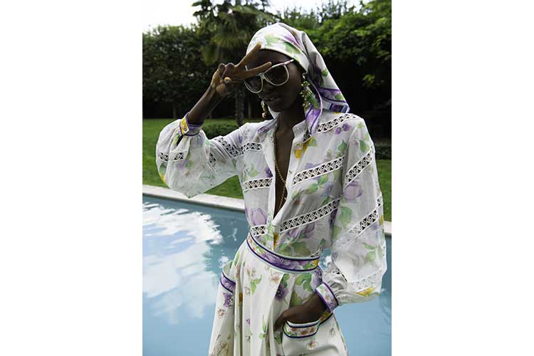 Il romanticismo estivo è anche all'ordine del giorno da Leonard. Eleganti camicie chiare in una stampa floreale clematide con effetto "sbiadito dal sole", indossate con una gonna a ruota bianca abbinata, per un impeccabile ensemble da promenade sulla Croisette. Mentre i fluttuanti abiti di chiffon e i pantaloni a palazzo che accarezzano la pelle e ondeggiano nella brezza estiva sono l'abbigliamento perfetto per un matrimonio di destinazione. Ricordano Sophia Loren in vacanza sulla costiera amalfitana. Poi abbinare quei pantaloni con un top halter bralette corrispondente per i cocktail post-matrimoniali in riva al mare, avvicinarsi a un uomo vestito da Leonard e lasciare che i festeggiamenti abbiano inizio.