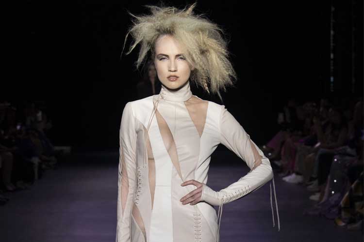 Nella sua palette di colori per la stagione, Julien Fournié fa brillare le tonalità del nero e del blu notte. Sceglie inoltre di intrecciare fili colorati metallici, modella corpi in jersey di seta 3D, traduce la pelle delle creature oceaniche a lui care nel motivo che forma le maglie di un jersey sottile, enfatizza la pelle con un ricamo a squame di pesce su una guaina di tulle "nuda", usa l'organza per rappresentare l'iridescenza della luce quando si riflette nello spazio pelagico.