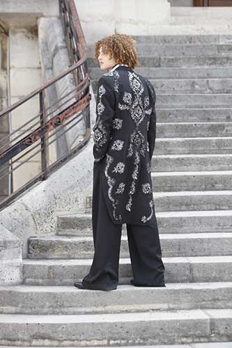 Ancora una volta, troviamo la natura. Essa fiorisce generosamente su un cappotto "Albero della vita", rifugio per uccelli esotici e altri insetti luccicanti.