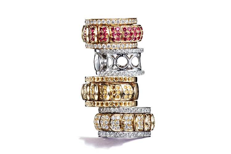 Ciò è reso possibile dagli "Spine” (“dorsi”), un sistema di chiusure meccaniche e pavè di pietre preziose intercambiabili, di cui Farnese Gioielli possiede un brevetto in 70 Paesi nel mondo.