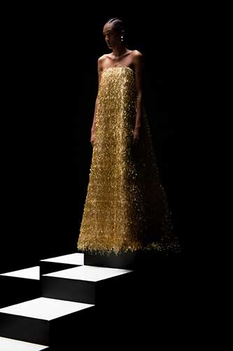 Tonalità ebano, brandy, papavero e calendula. Vinile abbagliante, broccato e ricami.