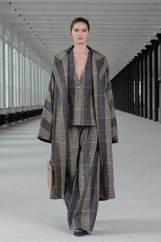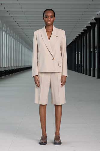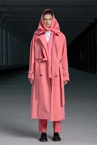 Eccellenti sono le camicie, i vestiti e le gonne festive che sono vivaci e diverse. Tutti gli abiti sono esuberanti e si combinano perfettamente con pezzi essenziali come trench classici, giacche su misura e pantaloni per l'uso quotidiano.La tavolozza principale utilizzata nella collezione è la tonalità NEHERA essenziale, come il beige, bianco sporco e nero, accompagnati da speciali colori di contrasto, come il rosa fenicottero, senape, oro e argento; una bizzarra giustapposizione che accentua la sensazione sognante e surreale della collezione.