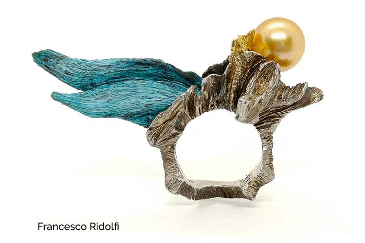 Secondo premio per Francesco Ridolfi, premiato grazie al suo anello La città nel cielo ispirato a una storia fantasy in cui una città, simbolo della resistenza, spiega le ali che nascono dalla montagna e inizia a fluttuare nel cielo. Terzo premio a pari merito per gli artisti orafi romani Glauco Cambi ed Epifanio. Il primo ha presentato la collana Fuori dall’Eclissi che simbolizza il processo di elaborazione e superamento del dolore. Epifanio ha creato una collana, intitolata Emozioni, che esprime l’emozione della gioia di vivere, un’esplosione di colori che termina in una lacrima di felicità. I tre autori orafi esporranno una selezione di creazioni della loro produzione all’interno della Galleria Incinque Open Art Monti.