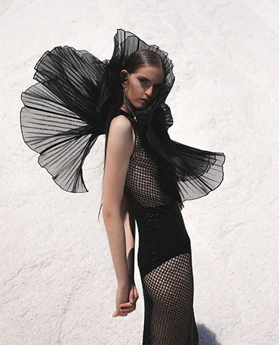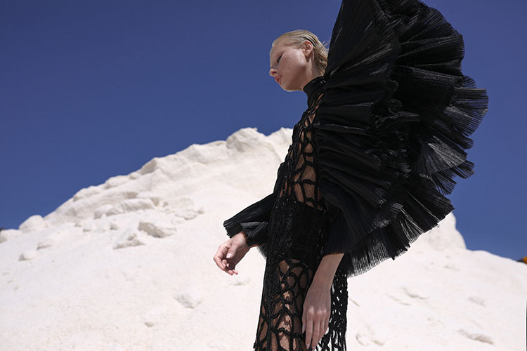 La simbologia è fondamentale in "Sal Negra": l'alba rappresenta la rinascita di una nuova era dopo un anno turbolento e il nome stesso della collezione è rafforzato dallo scenario in cui si svolge la passerella.
