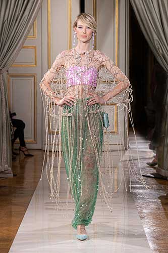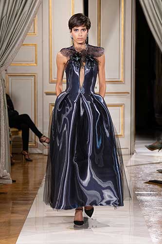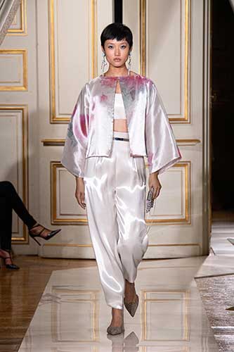 In questa sfilata, ospitata per la seconda volta nel palazzo dell'ambasciata italiana a Parigi, lo stilista ha inserito alcuni capi dell'ultima collezione Haute Couture in omaggio a Milano, creando un sottile filo conduttore che sottolinea un profondo senso di autenticità che trascende le stagioni.