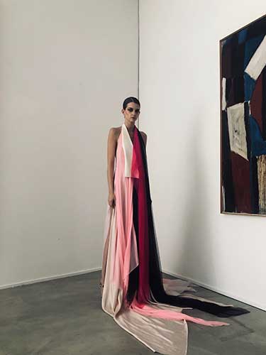 Lo spazio della galleria d'arte dove Suzanne ha scelto due giganteschi dipinti di Baselitz sono il contesto in cui le modelle si esprimono seguendo un filo immaginario, che le avvicina all'oggetto d'arte che indossano, che esse stesse rappresentano e che percepiscono con i dipinti che circondano il loro spazio d'azione.