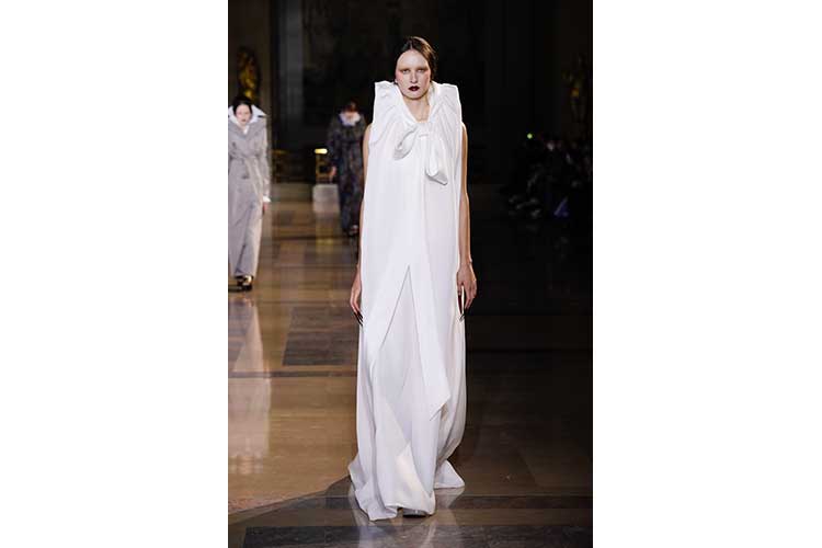 I tessuti sono vaporosi, ma sempre compatti per sostenere le forme architettoniche.