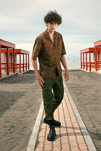 An approach that transcends the idea of "classic" and focuses on fluid fits and garments that prefer unusual color combinations, where the suits are reinvented through new rules. The result is an extremely modern ensemble that with the proposals of sweaters, shirts and outerwear crosses a new frontier in perfect balance with the DNA of the brand.