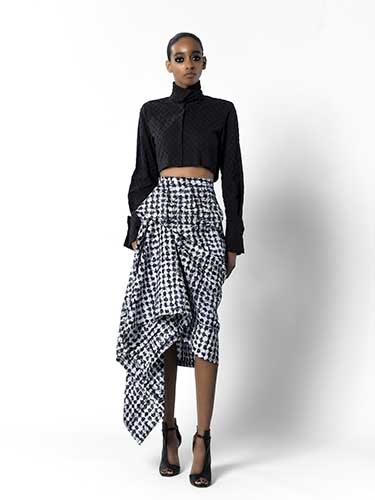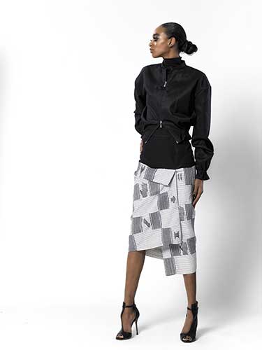 In particolare tecniche artigianali del continente africano, sempre con prezioso Kenté del Ghana, tessuto a mano, ma soprattutto batik del Ghana e della Nigeria, chiamati Adire. Utilizzando timbri, cera e tintura, questa tecnica consente di stampare tessuti con disegni semplici ma vivaci, con una profondità che le moderne tecniche di stampa raramente consentono.