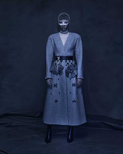 I disegni floreali sono completamente assenti nella collezione Haute Couture Autunno-Inverno 2021/2022, sostituiti da motivi più geometrici. Molto è stato basato sulla forma di un "lemekh", una tegola di legno a forma di scala che copre le cupole delle chiese del "Kizhi Pogost" - un insieme architettonico sull'isola di Kizhi. Inoltre, gli antichi disegni di simboli solari, normalmente posti all'esterno di una casa per proteggere dagli spiriti maligni, sono stati reinterpretati dallo studio di progettazione. Riferimenti a questi elementi si possono trovare nei risvolti, nelle file di frange su un corsetto o un abito, in una tecnica unica di perforazione della pelle, nella geometria ridotta del pizzo Yelets e nei motivi dei pezzi lavorati a maglia. Tra i dettagli della collezione si possono scoprire anche i personaggi del mito pagano - uccelli, cavalli e lupi, tradizionalmente visti nei ricami di Zaonezh e Pudozh. L'immagine dell'uccello rappresenta la felicità nelle culture slave, e il cavallo simboleggia un protettore. Queste creature prendono vita sulle giacche, sugli abiti, nelle intricate reti di pizzo Yelets e nelle applicazioni.