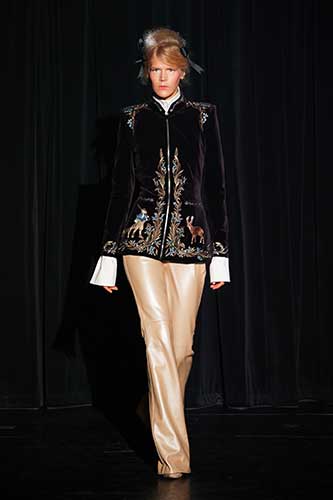 I tagli impeccabili e rigorosi sono completati da inspirazione in stile lingerie, che includono anche cinture larghe disegnate usando ricami e abbellimenti simili alla lingerie. Il gioco di Yulia Yanina sulle texture crea look sottili ma audaci pieni di intrigo e provocazione.